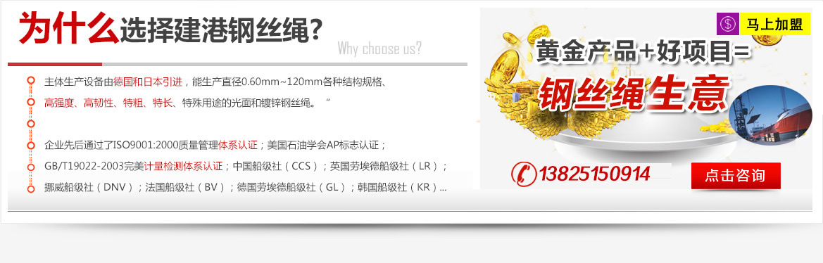建港鋼絲繩加盟是3年前開始做的,選擇與建港鋼絲繩合作很簡(jiǎn)單,當(dāng)時(shí)我想再找一個(gè)鋼絲繩品牌,通過(guò)朋友介紹